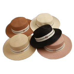 Verano Big Brim Boater Carácter Rafia Sombrero de paja Malla Perla Seaside Bow Protección solar al aire libre